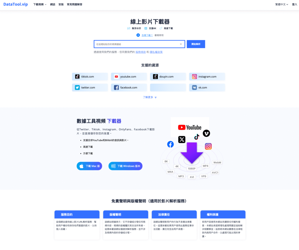 想要轻松下载 YouTube、抖音、Instagram 上的高质量视频?想随手收藏精彩短片、长视频,又不被广告和水印烦扰?DataTool.vip(智Tool)可以说是目前最强大的在线视频下载服务之一,简单易用、资源丰富、高效无水印,完美契合视频收藏的所有期待。除了网页版,还包括 win 版和 mac 版。
